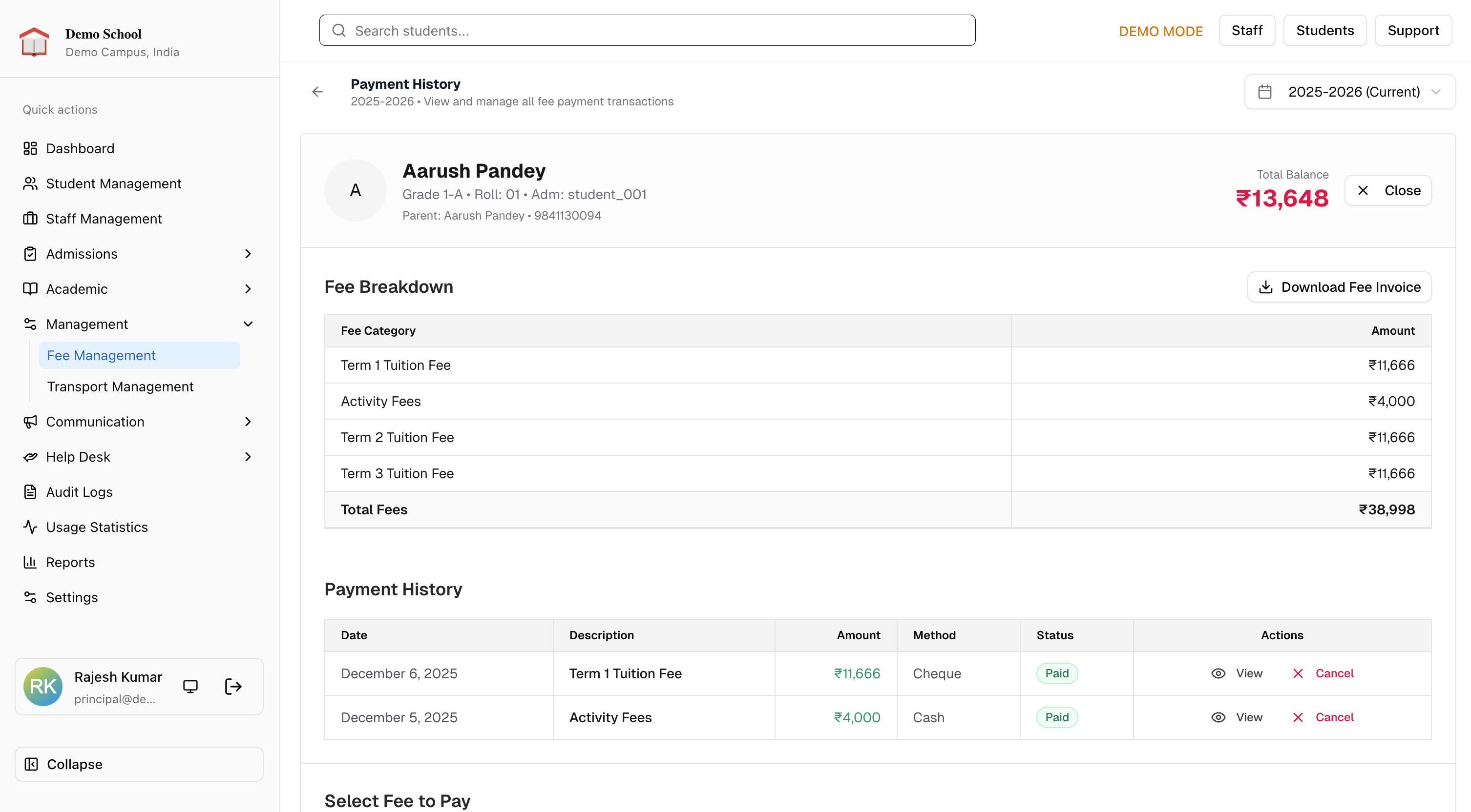 When your child gets a fee discount or concession, it shows up in your account with the details. Everything is transparent.