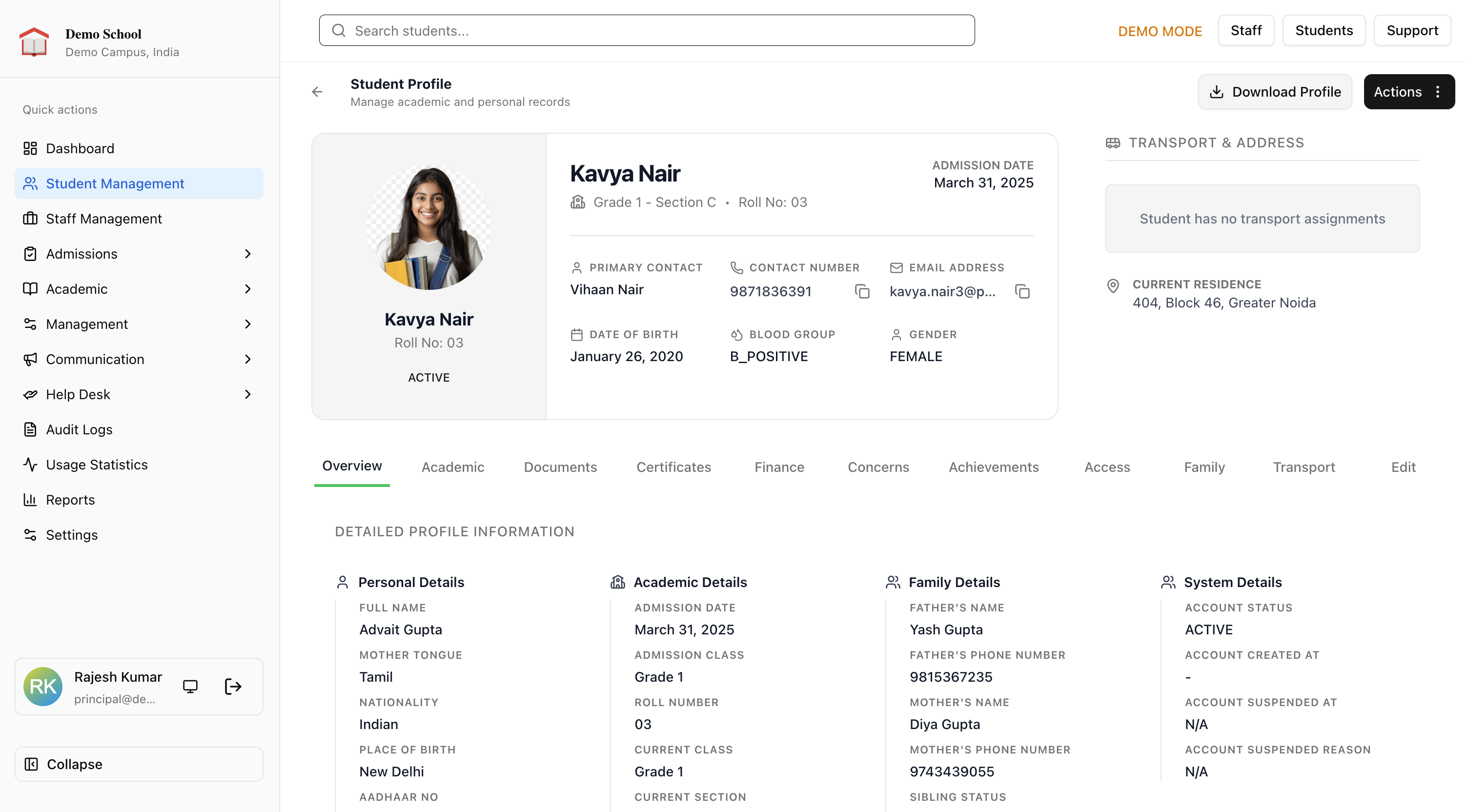 If something needs attention, whether it is academic, transport, or general, you can raise a ticket directly from the app and track it until it is resolved.